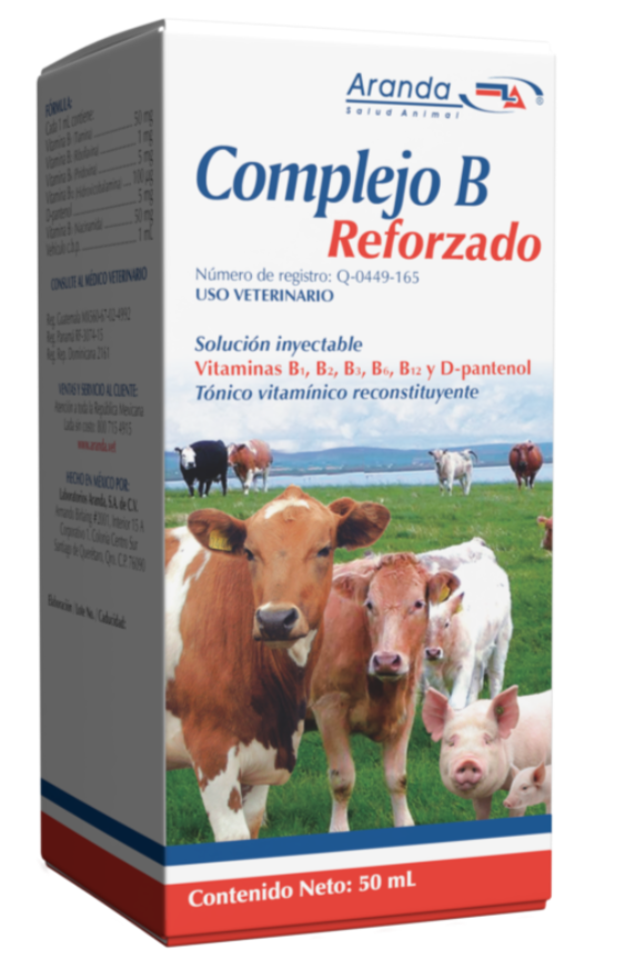 Tónico reconstituyente y estimulante general para bovinos productores de carne y leche, equinos, porcinos, ovinos, caprinos, caninos, felinos y aves de ornato, útil en la prevención y tratamiento de afecciones causadas por deficiencia de vitaminas del complejo B.