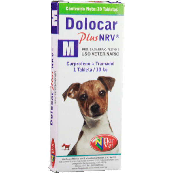Recomendada en Caninos: 1 tableta / 10kg de peso corporal 1 vez al día, por 4 días consecutivos, equivalente a Carprofeno: 4.4 mg de / kg de peso, o se puede dividir la dosis total diaria a 2.2 mg /kg de peso cada 12 horas, y Tramadol: 2 mg / kg de peso corporal al día o se puede dividir la dosis total diaria cada 12 horas.