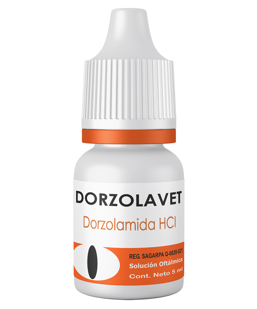 Actúa en los procesos ciliares inhibiendo la síntesis de la enzima anhidrasa carbónica lo que reduce el transporte de sodio y agua hacia la cámara posterior generando una menor producción de humor acuoso. Ideal en el tratamiento de perros, gatos y caballos con glaucoma.