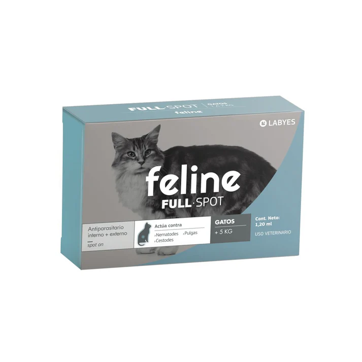 Feline Fullspot desparasita interna y externamente al paciente felino sin generarle estrés, gracias a su aplicación tópica.
