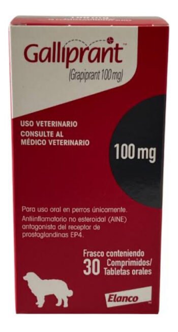 Descripción Galliprant es un medicamento veterinario utilizado en perros para tratar el dolor y la inflamación asociados con la osteoartritis. El principio activo de Galliprant es el grapiprant, que es un antagonista del receptor de prostaglandina EP4. Actúa al bloquear específicamente este receptor en el cuerpo, lo que reduce la inflamación y el dolor en las articulaciones afectadas por la osteoartritis.