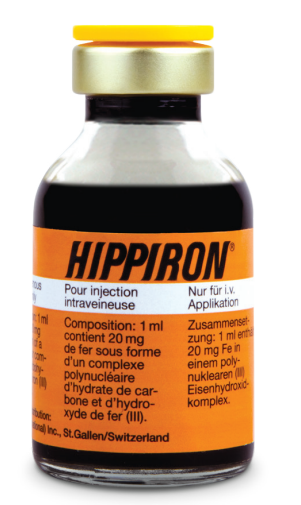 HIPPIRON es una solución hematinica formulada a base de un complejo polinuclear no ionizado de hidróxido férrico y sacarosa estéril y libre de pirógenos,