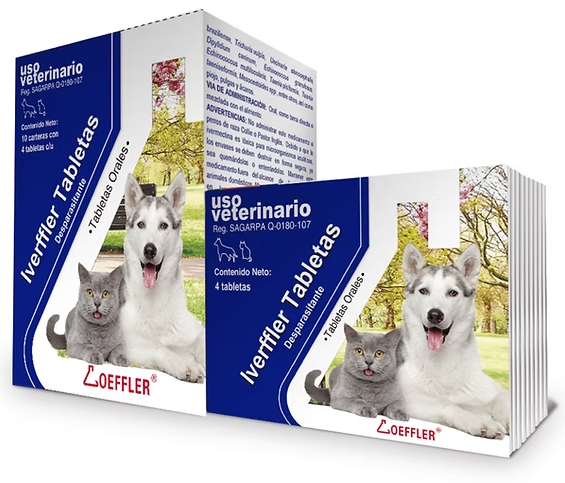 Iverffler Tabletas® es un desparasitante de amplio espectro. Actúa sobre céstodos y nemátodos gastrointestinales y pulmonares, en su fase larvaria y adulta; sirve de coadyuvante en el tratamiento y prevención de infestaciones por piojos, pulgas y ácaros causantes de la sarna en perros y gatos.