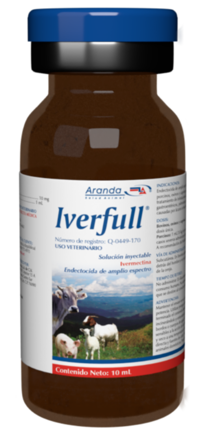 Endectocida de amplio espectro y efecto residual indicado en bovinos, porcinos, ovinos y caprinos; que contiene ivermectina al 1% para el tratamiento de infestaciones causadas por parásitos internos gastroentéricos, pulmonares y renales, así como parasitosis externas causadas por ácaros e insectos.