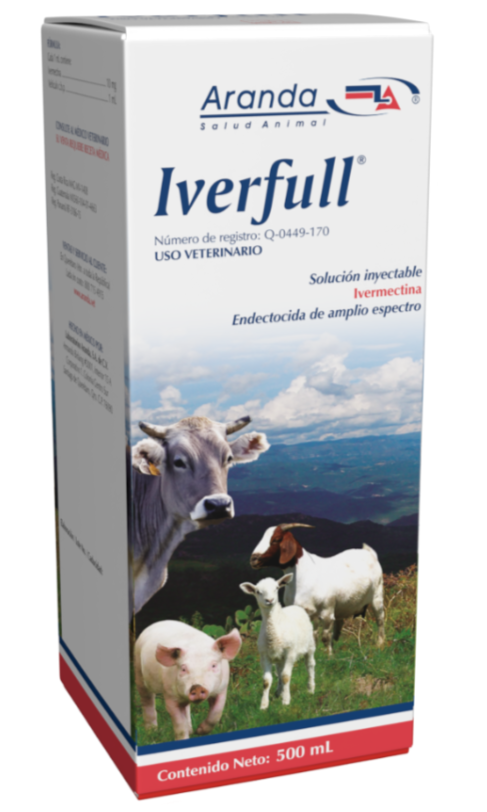 Endectocida de amplio espectro y efecto residual indicado en bovinos, porcinos, ovinos y caprinos; que contiene ivermectina al 1% para el tratamiento de infestaciones causadas por parásitos internos gastroentéricos, pulmonares y renales, así como parasitosis externas causadas por ácaros e insectos.