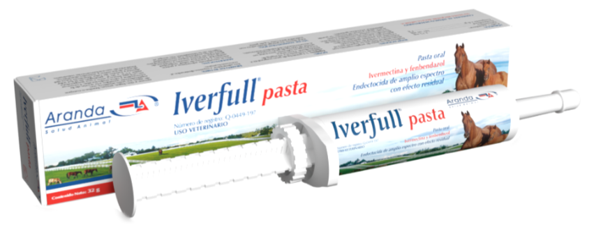 Endectocida en pasta de amplio espectro con efecto residual indicado en equinos para el tratamiento y control de infestaciones causadas por parásitos gastrointestinales, pulmonares y renales en todas sus etapas de desarrollo, incluyendo nemátodos y céstodos. Su espectro incluye ectoparásitos como ácaros, piojos y larvas de insectos. Se puede administrar a hembras gestantes.