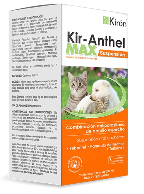 Antiparasitario de amplio espectro, para el tratamiento de infestación de nematodos (gusanos redondos) en sus