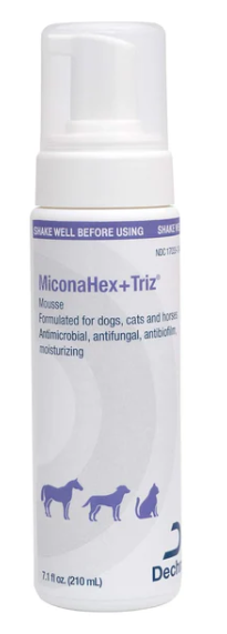 La mousse MiconaHex Triz (7,1 oz, 200ml) combate infecciones fúngicas y bacterianas en perros, gatos y caballos. Con miconazol y ceramidas, sana e hidrata. Formulado por veterinario, es fácil de aplicar, ideal para zonas específicas. La botella ecológica y reciclable apoya el cuidado ecológico, asegurando una piel sana y un pelaje brillante para las mascotas.