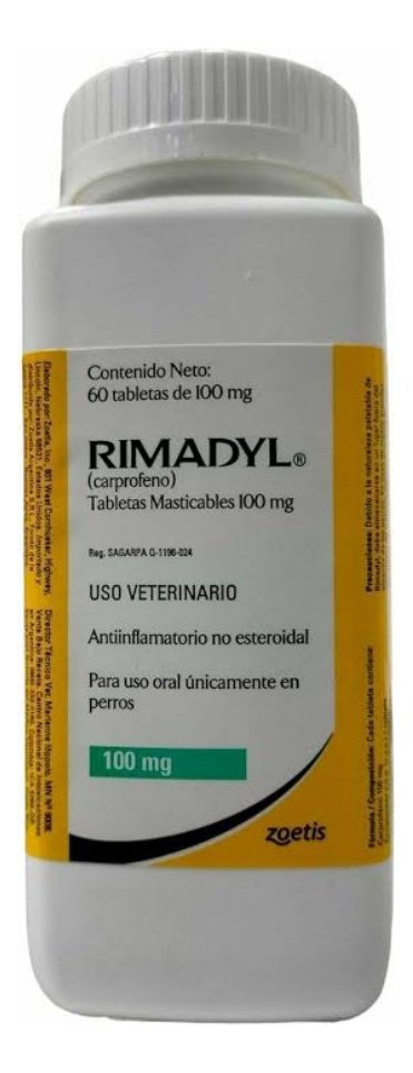 ⦁ Características: Rimadyl® (Carprofen) es un fármaco antiinflamatorio no esteroide (AINEs) de la familia del ácido propiónico, que incluye a ibuprofeno, naproxen y ketoprofeno. Principio Activo: Carprofeno 75mg