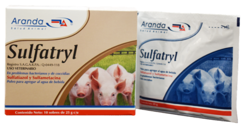 Antibiótico y antiprotozoario bacteriostático recomendado en porcinos para el tratamiento de colibacilosis porcina, estreptococosis, salmonelosis, pododermatitis y problemas respiratorios (Pasteurella multocida y Bordetella bronchiseptica); en aves de engorda y postura, contra coriza infecciosa, coccidiosis, cólera aviar agudo (Pasteurella multocida), enfermedad respiratoria crónica complicada y pullorosis o diarrea blanca bacilar.