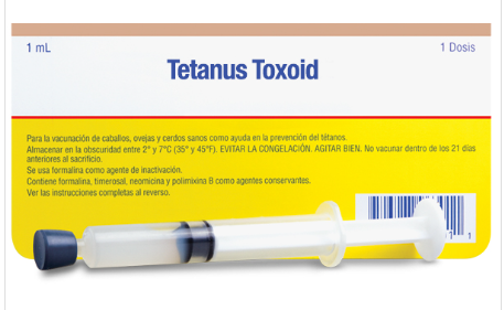 Biológico en suspensión, auxiliar en la prevención de tétanos. Para la vacunación de caballos sanos como ayuda en la prevención del tétanos