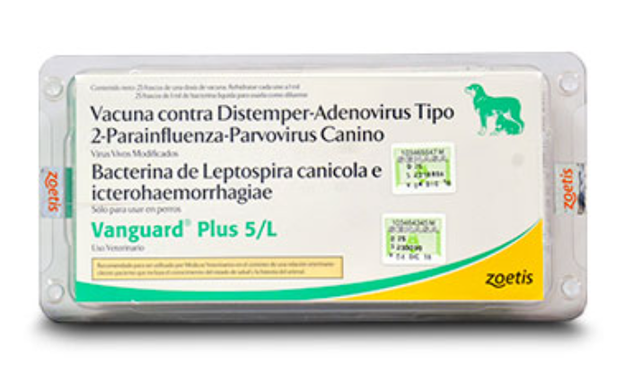 Inmunización activa contra Distemper, Hepatitis infecciosa canina producida por Adenovirus canino tipo 1, Enfermedad respiratoria causada por Adenovirus canino tipo 2, Parainfluenza, Parvovirosis y Leptospirosis en caninos sanos.